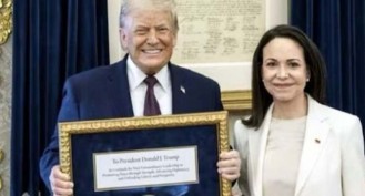 വെനസ്വേലൻ പ്രതിപക്ഷ നേതാവും 2025ലെ സമാധാനത്തിനുള്ള നൊബേൽ സമ്മാന ജേതാവുമായ മരിയ കൊറീന മഷാദോ വൈറ്റ് ഹൗസിൽ നടന്ന കൂടിക്കാഴ്ചയിൽ തന്റെ നൊബേൽ പുരസ്കാരം യു.എസ് പ്രസിഡന്റ് ഡോണൾഡ് ട്രംപിന് സമർപ്പിച്ചു. ...