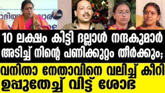 10 ലക്ഷം കിട്ടി ദല്ലാൾ നന്ദകുമാർ അടിച്ച് നിന്റെ പണിക്കുറ്റം തീര്ക്കും; വനിതാ നേതാവിനെ വലിച്ച് കീറി ഉപ്പുതേച്ച് വിട്ട് ശോഭ