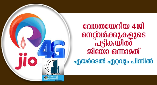 വേഗതയേറിയ 4ജി നെറ്റ്വര്ക്കുകളുടെ പട്ടികയില് ജിയോ ഒന്നാമത്; എയര്ടെല് ഏറ്റവും പിന്നില്