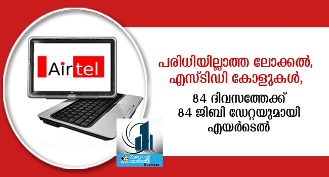 പരിധിയില്ലാത്ത ലോക്കല്, എസ്ടിഡി കോളുകള്, 84 ദിവസത്തേക്ക് 84 ജിബി ഡേറ്റയുമായി എയര്ടെല്