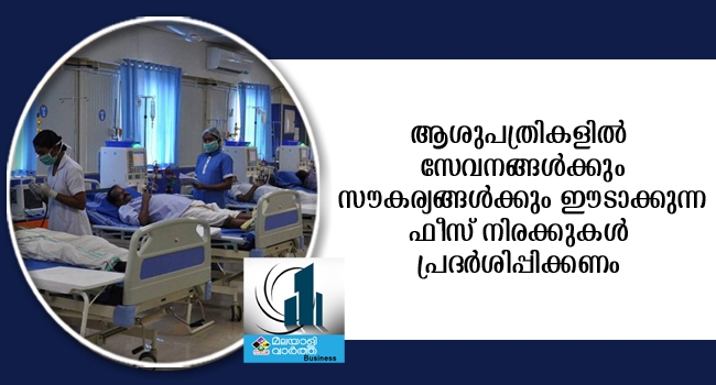 ആശുപത്രികളിൽ സേവനങ്ങള്ക്കും സൗകര്യങ്ങള്ക്കും ഈടാക്കുന്ന ഫീസ് നിരക്കുകള് പ്രദര്ശിപ്പിക്കണം