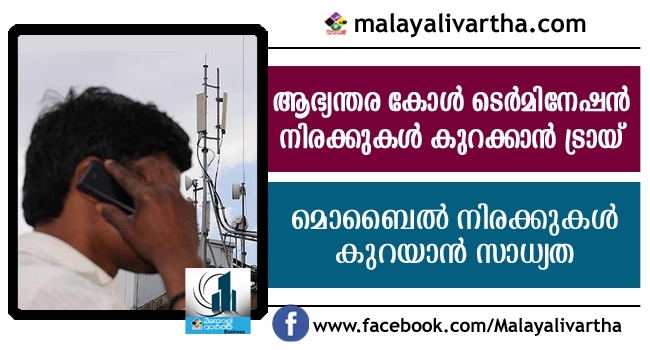 ആഭ്യന്തര കോള്ടെര്മിനേഷന് നിരക്കുകള് കുറച്ച് ടെലികോം റെഗുലേറ്ററി അതോറിറ്റി ഓഫ് ഇന്ത്യ (ട്രായ്). മിനിറ്റിന് 14 പൈസയായിരുന്നത് ആറുപൈസയാക്കിയാണ് കുറച്ചത്. ഒക്ടോബര് ഒന്നുമുതല് പുതിയ നിരക്കുകള് നിലവില്വരും.
