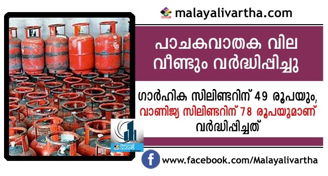 പാചകവാതക വിലയില് വീണ്ടും വന് വര്ധന