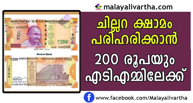 ചില്ലറക്ഷാമം പരിഹരിക്കുന്നതിന് എടിഎമ്മുകളിലൂടെ 200 രൂപ നോട്ടു വിതരണം ചെയ്യാന് ആര്ബിഐയില്നിന്നും നിര്ദേശം ലഭിച്ചതായി ബാങ്കിങ് വൃത്തങ്ങള് അറിയിച്ചു. 200 രൂപ നോട്ട് കൈകാര്യം ചെയ്യുന്ന തരത്തിലേക്ക് എടിഎമ്മുകളെ സ്ജ്ജമാക്കാന് 110 കോടിയോളം രൂപയാണ് ചെലവു വരുന്നത്. ഒരു എടിഎം പരിഷ്കരിക്കാന് 5000 രൂപയോളമാണ് ചെലവ്.