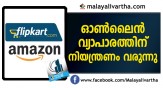 അവിശ്വസനീയമായ ഇളവുകള് പ്രഖ്യാപിക്കുന്ന ഓണ്ലൈന് വ്യാപാരകമ്പനികളായ ഫ്ലിപ്കാര്ട്ട്, ആമസോണ് തുടങ്ങിയക്ക് നിയന്ത്രണം ഏര്പ്പെടുത്തുന്നു. ഓണ്ലൈന് വ്യാപാരം എന്ന ബിസിനസ് രീതി സ്വീകരിച്ചിട്ടുള്ള ഈ കമ്പ...