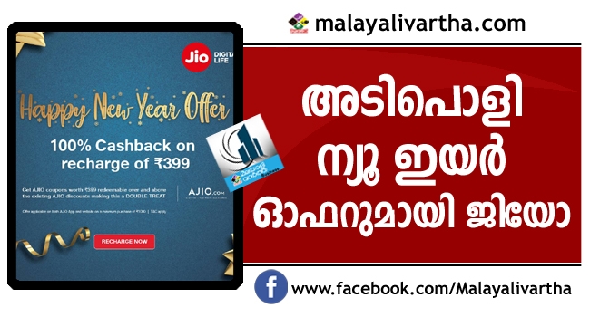 100 ശതമാനം ക്യാഷ്ബാക്കുമായി ജിയോയുടെ ന്യൂ ഇയര് ഓഫര്