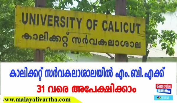 കലിക്കറ്റ് സര്വകലാശാലയിൽ എംബിഎക്ക് 31 വരെ അപേക്ഷിക്കാം