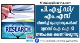 ഐസറിൻറെ തിരുവനന്തപുരം കേന്ദ്രത്തിൽ ഗവേഷണത്തിന് അവസരം