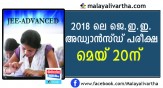 2018 ലെ ജോയന്റ് എന്ട്രന്സ് എക്സാമിനേഷന് (JEE അഡ്വാന്സ്ഡ്) മേയ് 20 ന്