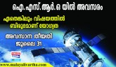 ഐഎസ്ആര്ഒയില് ബിരുദക്കാര്ക്ക് അവസരം; അവസാന തീയതി ജൂലായ് 31