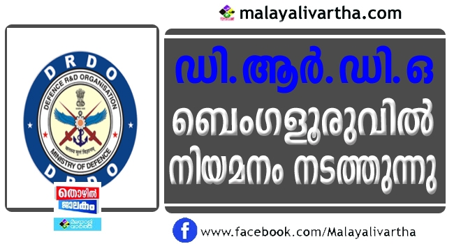 ഡി.ആർ.ഡി.ഒ ബെംഗളൂരുവിൽ നിയമനം നടത്തുന്നു
