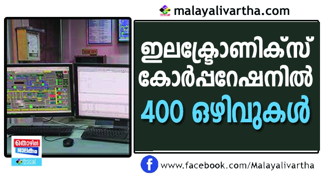 ഇലക്ട്രോണിക്സ് കോർപ്പറേഷനിൽ 400 ഒഴിവുകൾ
