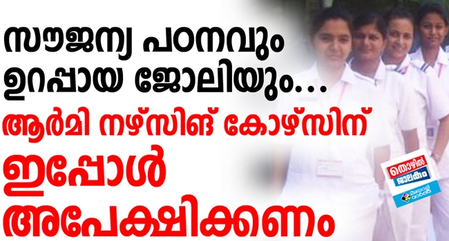 സൗജന്യ പഠനവും ഉറപ്പായ ജോലിയും ... ആര്മി നഴ്സിങ് കോഴ്സിന് ഇപ്പോൾ അപേക്ഷിക്കാം