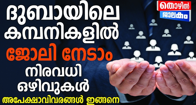 ദുബായിലെ വിവിധ കമ്പനികളിൽ ജോലി ഒഴിവുകളുണ്ട്. വിശദ വിവരങ്ങൾ ഇങ്ങനെ