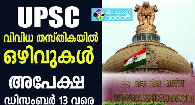 യൂണിയൻ പബ്ലിക് സർവീസ് കമ്മീഷൻ വിവിധ തസ്തികകളിലേക്ക് അപേക്ഷ ക്ഷണിച്ചു. ഡിസംബർ 13 നു മുൻപ് അപേക്ഷിക്കണം . ആകെ 60 ഒഴിവുകളാണുള്ളത്