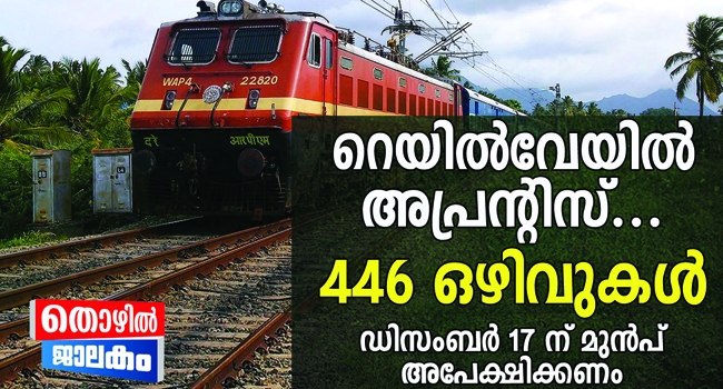നോർത്ത് സെൻട്രൽ റെയിൽവേ ഝാൻസി ഡിവിഷനിൽ 446 അപ്രന്റിസ് ഒഴിവുകളിലേക്ക് ഡിസംബർ 17 ന് മുൻപ് അപേക്ഷിക്കണം