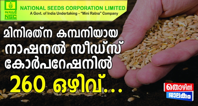 മിനിരത്ന കമ്പനിയായ ഡൽഹിയിലെ നാഷനൽ സീഡ്സ് കോർപറേഷൻ ലിമിറ്റഡ് വിവിധ തസ്തികയിലെ ഒഴിവുകളിലേക്ക് അപേക്ഷ ക്ഷണിച്ചു