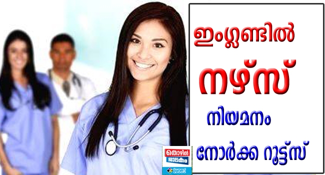 ഇംഗ്ലണ്ടിൽ നോർക്ക റൂട്ട്സ് നഴ്സുമാരെ നിയമിക്കുന്നു. എൻഎച്ച്എസ് ഫൗണ്ടേഷൻ ട്രസ്റ്റിനു കീഴിലുള്ള ആശുപത്രികളിൽ ആണ് നോർക്ക റൂട്ട്സ് നഴ്സുമാരെ നിയമിക്കുന്നത് .