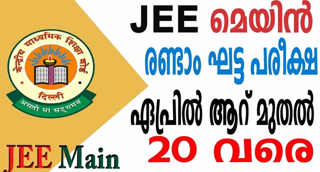 JEE മെയിൻ രണ്ടാം ഘട്ട പരീക്ഷ ഏപ്രിൽ ആറ് മുതൽ 20 വരെ