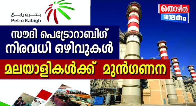 സൗദി പെട്രോറാബിഗിൽ നിരവധി ഒഴിവുകൾ ഉണ്ട്. . ഭക്ഷണവും താമസ സൗകര്യവും ലഭിക്കും. പത്താം ക്ലാസ് മുതൽ മുകളിൽ യോഗ്യതയുള്ള മലയാളികൾക്ക് അപേക്ഷിക്കാം.
