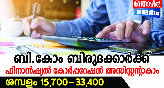 ബി.കോം ബിരുദക്കാര്ക്ക് ഫിനാന്ഷ്യല് കോര്പ്പറേഷന് അസിസ്റ്റന്റാകാം