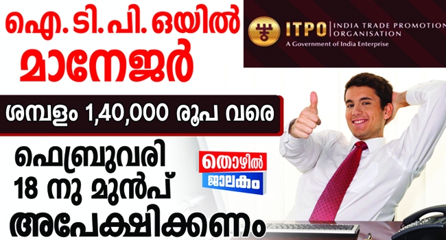 കേന്ദ്രസര്ക്കാര് സ്ഥാപനമായ ഇന്ത്യ ട്രേഡ് പ്രൊമോഷന് ഓര്ഗനൈസേഷന് വിവിധ വിഭാഗങ്ങളിലേക്ക് ഡെപ്യൂട്ടി മാനേജര്, സീനിയര് അസിസ്റ്റന്റ് (ഇലക്ട്രിക്കല്) തസ്തികകളില് അപേക്ഷ ക്ഷണിച്ചു.
