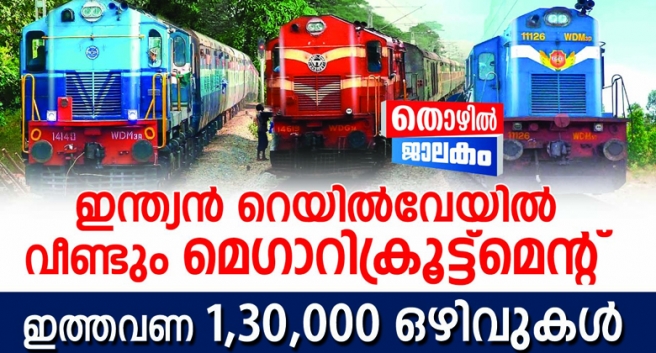 1,30,000 ഒഴിവുകളിലേക്കാണ് ഇത്തവണ റിക്രൂട്ടമെന്റ് നടത്തുന്നത്. ഉദ്യോഗാര്ഥികള്ക്ക് ആര്.ആര്.ബി വെബ്സൈറ്റ് വഴി ഫെബ്രുവരി 28 മുതല് അപേക്ഷിക്കാം