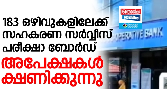 സംസ്ഥാനത്തെ വിവിധ പ്രാഥമിക സഹകരണസംഘങ്ങളിലെയും സഹകരണ ബാങ്കുകളിലെയും 183 ഒഴിവുകളിലേക്ക് അപേക്ഷകൾ ക്ഷണിക്കുന്നു; നിയമനം റാങ്ക് ലിസ്റ്റ് പ്രകാരം