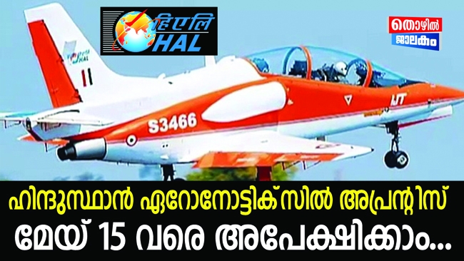അപേക്ഷ: www.apprenticeship.gov.in എന്ന വെബ്സൈറ്റിലൂടെയാണ് അപേക്ഷിക്കേണ്ടത്.വെബ്സൈറ്റിൽ Establishment hindustan Aeronautics Limited എന്ന് തിരഞ്ഞെടുക്കുക.