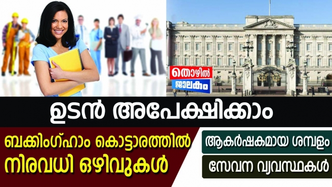 ബ്രിട്ടീഷ് രാജ്ഞിയുടെ ഔദ്യോഗിക വസതിയായ ബക്കിംഗ്ഹാം കൊട്ടാരത്തിൽ ജോലി തേടാനുള്ള അവസരമാണ് ഇപ്പോൾ ഉള്ളത്. വിദേശ ജോലി ആഗ്രഹിക്കുന്നവർക്ക് ഇത് തീർച്ചയായും സുവർണാവസരമാണ്