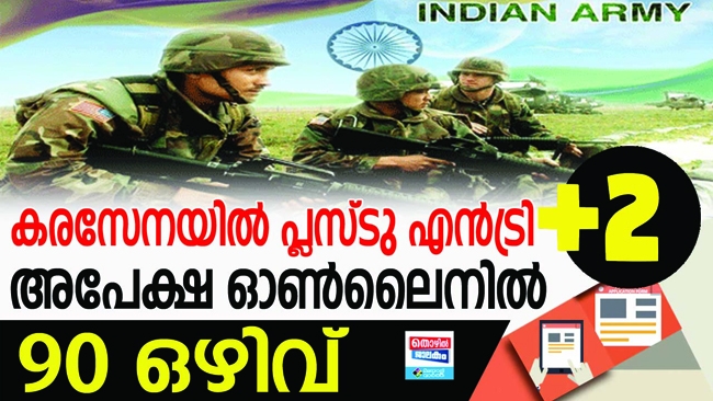 കരസേനയിൽ പ്ലസ്ടു ടെക്നിക്കൽ എൻട്രി സ്കീം (പെർമനന്റ് കമ്മിഷൻ) അപേക്ഷ ക്ഷണിച്ചു. 42–ാമാറ്റത്തെ കോഴ്സിലേക്കാന് ഇപ്പോൾ അപേക്ഷ ക്ഷണിച്ചിട്ടുള്ളത്