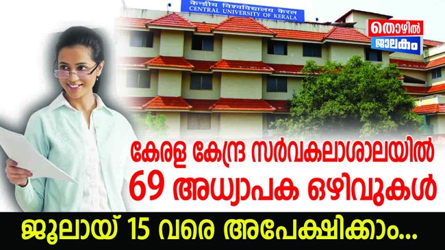 കേരള കേന്ദ്ര സര്വകലാശാലയില് 69 അധ്യാപക ഒഴിവുകള്..ജൂലായ് 15 വരെ അപേക്ഷിക്കാം......