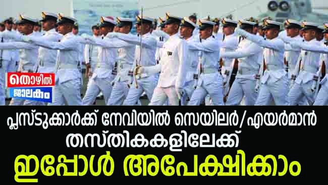 പ്ലസ്ടുക്കാര്ക്ക് നേവിയില് സെയിലർ/എയർമാൻ തസ്തികകളിലേക്ക് ഇപ്പോൾ അപേക്ഷിക്കാം