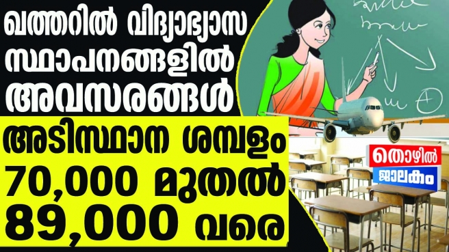 ഖത്തറിൽ വിദ്യാഭ്യാസ സ്ഥാപനങ്ങളിൽ അവസരങ്ങൾ, അടിസ്ഥാന ശമ്പളം 70,000 മുതല് 89,000 വരെ