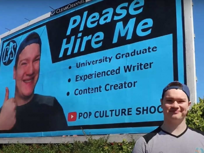 2 019 സെപ്റ്റംബറിൽ ബിരുദം നേടിയ ശേഷം, വടക്കൻ അയർലണ്ടിൽ നിന്നുള്ള ക്രിസ് ഹാർക്കിൻ ജോലി തേടുകയായിരുന്നു. ബയോഡാറ്റയിലെ പ്രസക്ത ഭാഗങ്ങൾ ബുള്ളറ്റ് പോയിന്റുകളായി ക്രമീകരിച്ചും തന്റെ യൂട്യൂബ് ചാനലായ 'പോപ്പ് കൾച്ചർ ഷോക്ക്-ന്റെ പേരും ഉൾക്കൊള്ളുന്ന ഒരു ബിൽബോർഡാണ് 24-കാരനായ ക്രിസ് ഹാർക്കിൻ സ്ഥാപിച്ചത്.