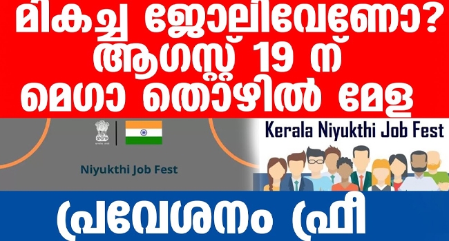 മികച്ച ജോലിവേണോ? ആഗസ്റ്റ് 19 ന്മെഗാ തൊഴിൽ മേള പ്രവേശനം ഫ്രീ...ആയിരക്കണക്കിന് തൊഴിൽ അവസരം