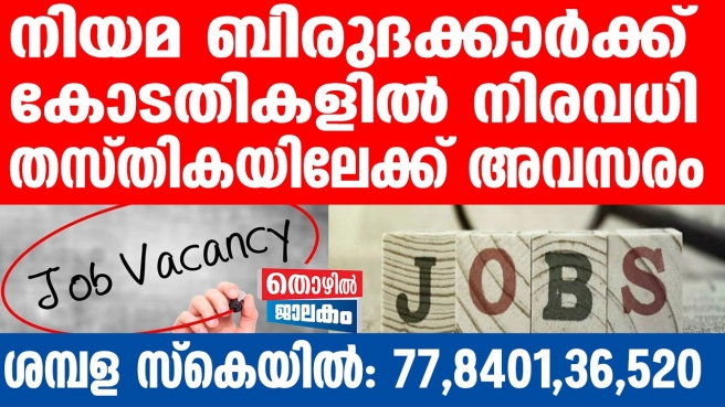 നിയമ ബിരുദക്കാർക്ക് കോടതികളിൽ നിരവധി തസ്തികയിലേക്ക് അവസരം ശമ്പള സ്കെയിൽ: 77,840-1,36,520 മേയ് 4 വരെ ഓൺലൈനായി അപേക്ഷിക്കാം