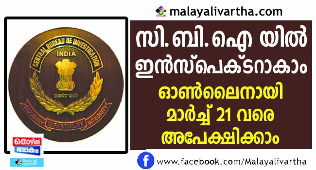 സി ബി ഐ സബ് ഇൻസ്പെക്ടർ പോസ്റ്റിലേക്ക് അപേക്ഷ ക്ഷണിച്ചു