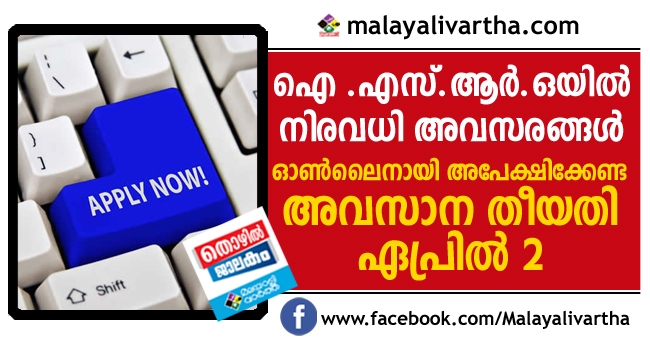 അപേക്ഷകള് ഒാണ്ലൈനായാണ് സമര്പ്പിക്കേണ്ടത്. അപേക്ഷകൾ ഓൺലൈനായിട്ട് അയക്കേണ്ട അവസാന തീയതി ഏപ്രിൽ 2 .കൂടുതൽ വിവരങ്ങൾക്ക് www.sac.gov.in അല്ലെങ്കില് recruitment.sac.gov.in/OSAR എന്നീ വെബ്സൈറ്റുകള് സന്ദര്ശിക്കുക.