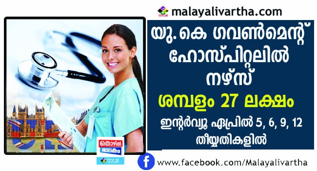 ലണ്ടൻ, കെന്റ് എന്നിവിടങ്ങളിലെ ഗവണ്മെന്റ് ആശുപത്രികളിലേക്ക് നഴ്സുമാരെ ആവശ്യമുണ്ട് .ഇപ്പോൾ ഏതെങ്കിലും മുൻ നിര ഹോസ്പിറ്റലുകളിൽ ജോലി ചെയ്യുന്നവരാണ് അപേക്ഷിക്കേണ്ടത്. മാർച്ച് ഏപ്രിൽ മെയ് മാസങ്ങളിൽ OET / IELTS പാസ്സായവർക്കും ഫെബ്രുവരി /മാർച്ചിൽ പരീക്ഷ ഏഴുതിയവർക്കും അപേക്ഷിക്കാം.