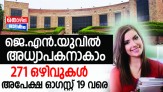 ഡല്ഹിയിലെ ജവഹര്ലാല് നെഹ്റു യൂണിവേഴ്സിറ്റിയില് (ജെ.എന്.യു.) അധ്യാപക തസ്തികകളിലേക്ക് ഇപ്പോൾ അപേക്ഷിക്കാം. വിവിധ വകുപ്പുകളില് അസിസ്റ്റന്റ് പ്രൊഫസര്, അസോസിയേറ്റ് പ്രൊഫസര്, അസിസ്റ്റന്റ് പ്രൊഫസര് തസ്തികകളിലായി ആണ് ഒഴിവുകളുള്ളത് . ആകെ 271 ഒഴിവാണുള്ളത്