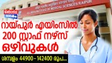 ഛത്തീസ്ഢിലെ റായ്പുരിലുള്ള ഓള് ഇന്ത്യ ഇന്സ്റ്റിറ്റ്യൂട്ട് ഓഫ് മെഡിക്കല് സയന്സസില് (എയിംസ്) നഴ്സിങ് ഓഫീസര് (സ്റ്റാഫ് നഴ്സ് -ഗ്രേഡ് II) തസ്തികയിലേക്കു അപേക്ഷകൾ ക്ഷണിച്ചു .അപേക്ഷ സ്വീകരിക്കുന്ന അവസാന തീയതി - ജൂലായ് 21
