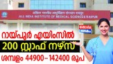 ഛത്തീസ്ഢിലെ റായ്പുരിലുള്ള ഓള് ഇന്ത്യ ഇന്സ്റ്റിറ്റ്യൂട്ട് ഓഫ് മെഡിക്കല് സയന്സസില് (എയിംസ്) നഴ്സിങ് ഓഫീസര് (സ്റ്റാഫ് നഴ്സ് -ഗ്രേഡ് II) തസ്തികയിലേക്കു അപേക്ഷകൾ ക്ഷണിച്ചു .അപേക്ഷ സ്വീകരിക്കുന്ന അവസാ...