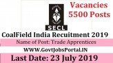 സൗത്ത് ഈസ്റ്റേൺ കോൾ ഫീൽഡ്സ് ലിമിറ്റഡ് അപ്രന്റിസുമാരുടെ 5500 ഒഴിവുകളിലേക്ക് അപേക്ഷ ക്ഷണിച്ചു. വിവിധ ട്രേഡുകളിലായി 5500 ഒഴിവുകൾ ഉണ്ട് . എട്ട...