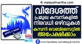 എയർ അറേബ്യ, ദുബായിലെ യൂനീട്രസ്റ്റ് ഇൻഷ്വറൻസ്, ദുബായ് മെട്രോ ,കുവൈറ്റ്, ദുബായ്, ഒമാൻ എന്നിവിടങ്ങളിലെ അൽഷയ ഗ്രൂപ്പ്, ഇന്റൽ ഗ്രൂപ് ഓഫ് കമ്പനികൾ എന്നിവയിലേക്ക് ഇപ്പോൾ അപേക്ഷിക്കാം