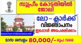 സുപ്രീംകോടതിയിൽ ജോലി നേടാന് ആഗ്രഹിക്കുന്നവര്ക്ക് സുവര്ണ്ണാവസരം. സുപ്രീം കോർട്ട് ഓഫ് ഇന്ത്യ ഇപ്പോള് ലോ ക്ലർക്ക്-കം-റിസർച്ച് അസോസിയേറ്റ്സ് തസ്തികയിലേക്ക് നിയമനം നടത്തുന്നതിനു വേണ്ടി യോഗ്യരായ ഉദ്യോഗാര്ഥികളില് നിന്നും അപേക്ഷ ക്ഷണിച്ചു. നിയമ ബിരുദം ഉള്ളവർക്ക് സുപ്രീംകോടതിയില് ജോലി മൊത്തം 90 ഒഴിവുകളിലേക്ക് ഉദ്യോഗാര്ത്ഥികള്ക്ക് ഓണ്ലൈന് ആയി അപേക്ഷിക്കാം