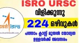 ISRO യിലെ 224 ഒഴിവുകളിലേക്ക് ഇപ്പോൾ അപേക്ഷിക്കാം. പത്താം ക്ലാസ് പാസ്സായർക്കും ഡിഗ്രീ ഉള്ളവർക്കും ISRO ക്ക് കീഴില് സ്ഥിര ജോലി