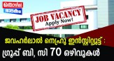 ജവാഹര്ലാല് നെഹ്രു ഇന്സ്റ്റിറ്റ്യൂട്ട് ഓഫ് പോസ്റ്റ് ഗ്രാജുവേറ്റ് മെഡിക്കല് എജുക്കേഷന് ആന്ഡ് റിസര്ച്ചില് ( പുതുച്ചേരി) ഗ്രൂപ്പ് ബി, സി തസ്തികകളിലായി 70 ഒഴിവുകളിലേക്ക് അപേക്ഷ ക്ഷണിച്ചു