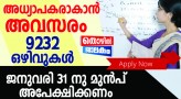 സ്പെഷ്യല് എജുക്കേഷന് ടീച്ചര്, അസിസ്റ്റന്റ് ടീച്ചര്, പി.ജി.ടി, ടി.ജി.ടി തുടങ്ങി വിവിധ തസ്തികകളിലായി 9232 ഒഴിവുകളാണ് റിപ്പോര്ട്ട് ചെയ്തിട്ടുള്ളത് . ജനുവരി 31 വരെ ഓണ്ലൈന് ആയി അപേക്ഷിക്കാം