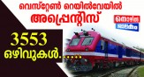 മുംബൈ ആസ്ഥാനമായുള്ള വെസ്റ്റേണ് റെയില്വേയുടെ കീഴിലെ വിവിധ ഡിവിഷനുകളിലും വര്ക്ക്ഷോപ്പുകളിലം അപ്രന്റിസ്ഷിപ്പിന് താൽപ്പര്യമുള്ളവർക്ക് ഇപ്പോൾ അപേക്ഷിക്കാം. വിവിധ ട്രേഡുകളിലായി 3553 ഒഴിവുകളാണുള്ളത് . വി...